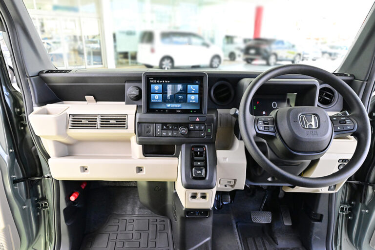 N-VAN e:は荷室の最大容量を追求。縦のビードラインを施すことで強度を高めるとともに、キズも目立ちにくくしています。積んで運ぶための合理的な使いやすさがつまった空間です。 助手席を倒すと最大2645mmの長尺物も積載可能で、床面はフラットで低床設計。荷物の積み下ろしがしやすい構造です。 助手席側ピラーレスになっていうので、大開口で作業効率アップ!縦ビード加工で強度と軽量化を両立し、傷も目立ちにくくなっています。 最大300kgまで積める広さで、段ボールなら71箱分もOK! シート周りには使いやすい収納が盛りだくさん!車検証やドリンク、ティッシュにスマホの充電まで、全部スッキリ収まります。 さらに、足元の広さと安定感のあるシートで、長時間の運転も疲れにくいのがうれしいポイントです。