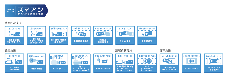 ムーヴに搭載されているダイハツの予防安全機能「スマートアシスト」は、日々の運転を支える大きな存在です。主な機能としては、